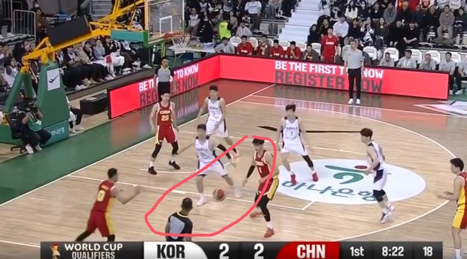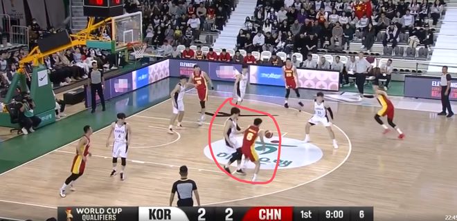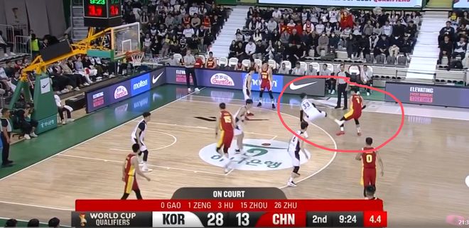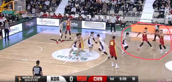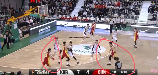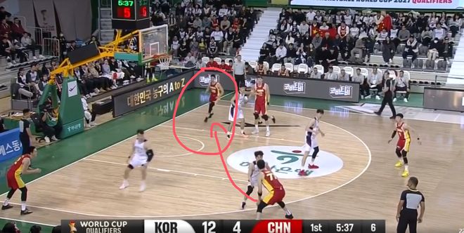 这一球就是程帅澎和曾凡博过度关注弧顶持球的韩国队员,漏掉了油漆区下顺的人