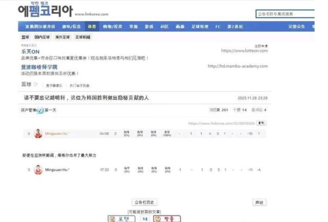 最近,中国男篮主客场两次被韩国队摁在地板上摩擦,给人感觉是又一支国足回来了。本来输球惨败就够让人憋气了,没想到韩国队官网和球迷更会整活,居然赞扬胡明轩为韩国队胜利做出了巨大贡献。我的天哪,作为胡明轩的贵人,只要杜锋不尴尬,尴尬的就是别人。