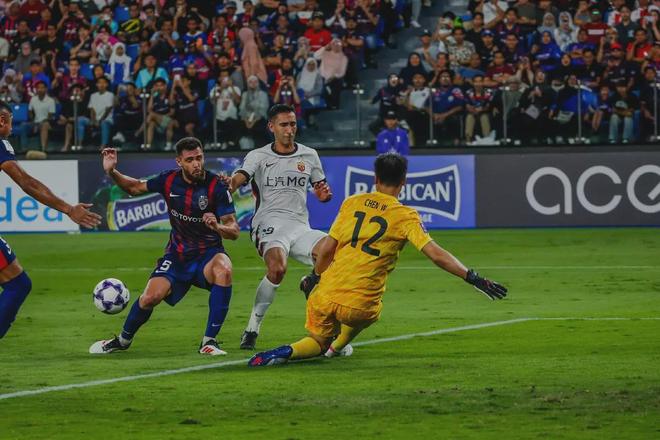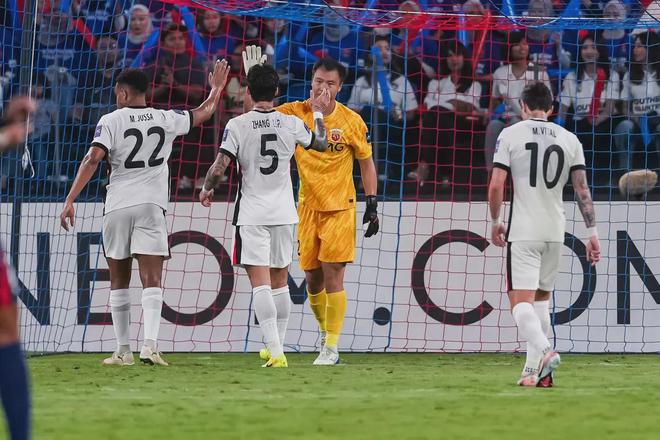 柔佛球员每次进攻都像在叩问这座由中国门将把守的城池,却始终找不到答案。